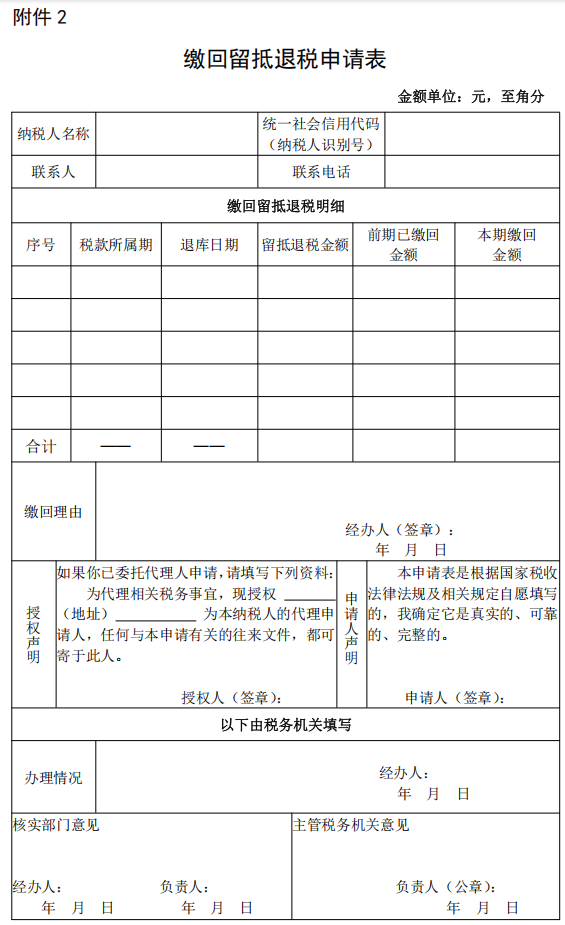 一、本表適用于納稅人按照規(guī)定,申請(qǐng)繳回已退還的增值稅期末留抵稅額退稅款。