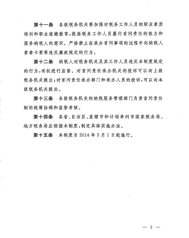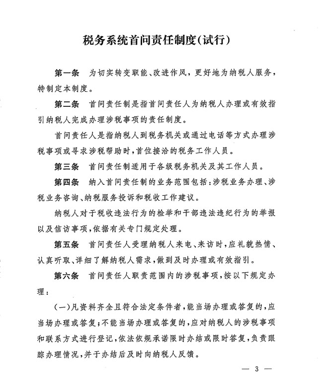 國(guó)家稅務(wù)總局關(guān)于印發(fā)《稅務(wù)系統(tǒng)首問(wèn)責(zé)任制度(試行)》的通知